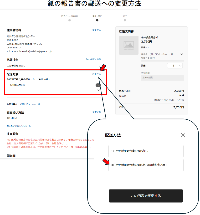 ④分析結果報告書の郵送あり(別途料金必要)を選択する